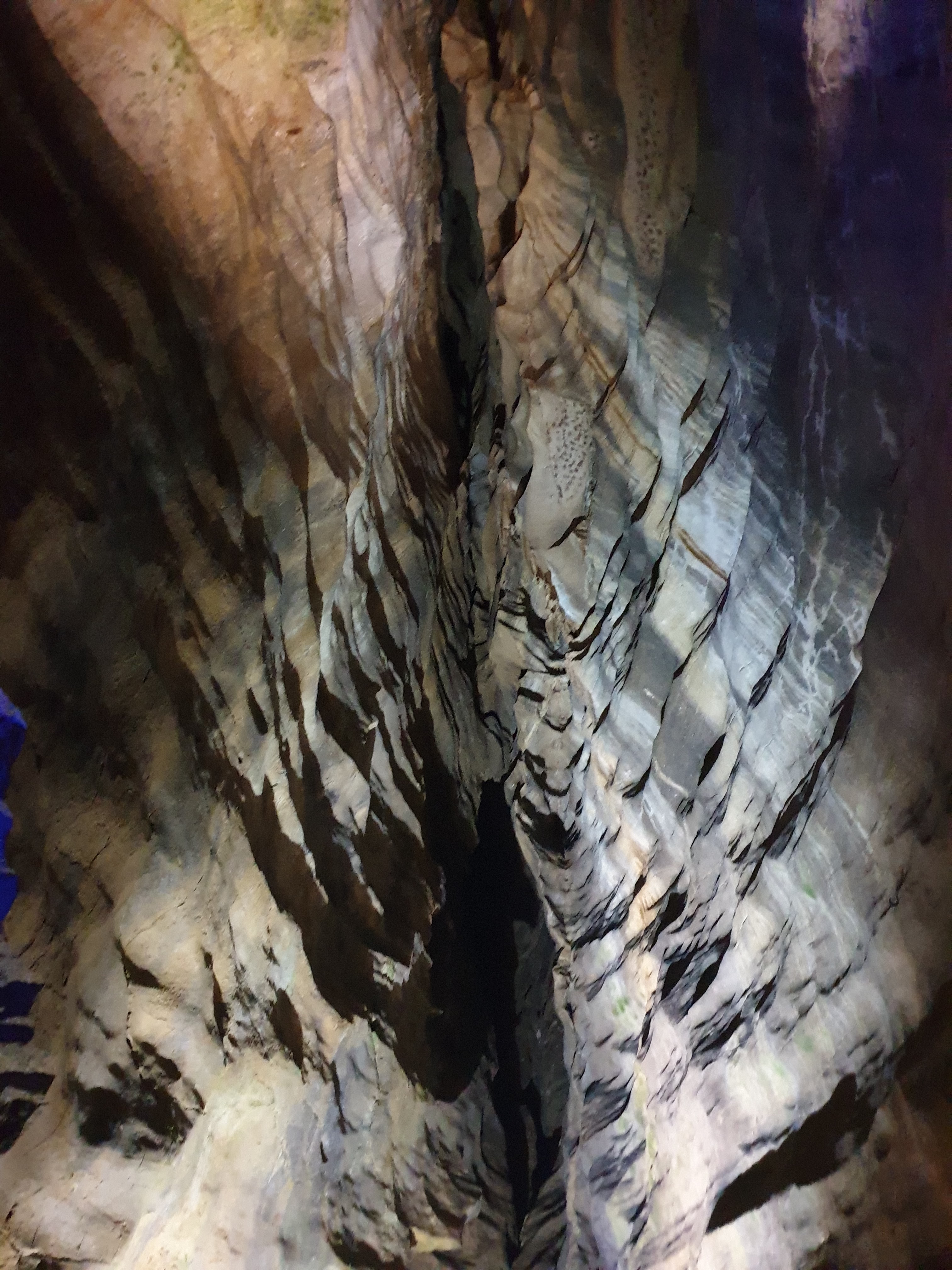 Grottes impressionnantes par sa profondeur : 71 mètres en-dessous du sol ! Tout est fait pour ne pas trop déranger les chauves souris, notamment le faible éclairage.